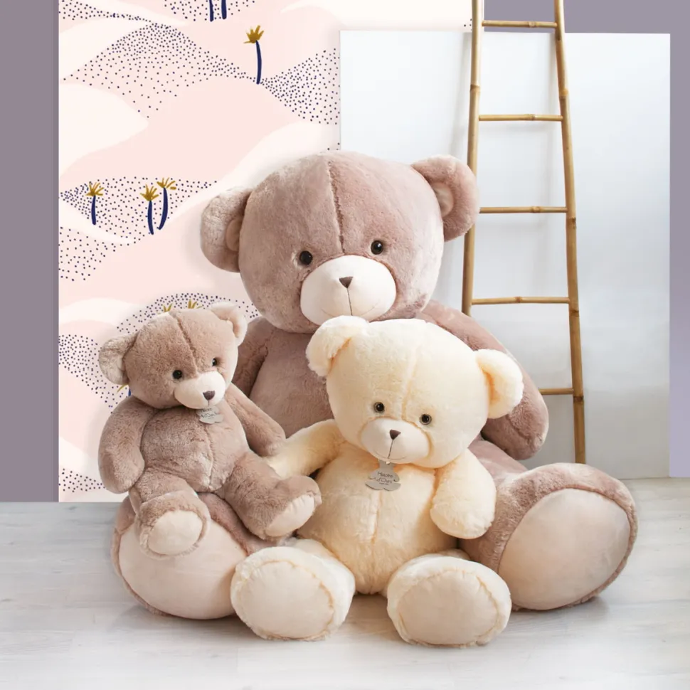 Il est beau, il est doux ! BELLYDOU est un ours souple, confortable et rassurant qui sera un parfait compagnon de câlins pour petits et grands. Un cadeau de naissance idéal.