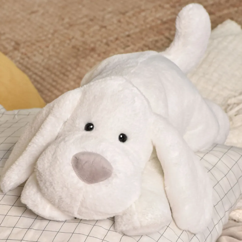 Son adorable petit minois blanc comme neige n’attend que vos tendres câlins ! Découvrez la peluche chien allongé stretch blanc de 40 cm, conçue pour vous apporter une douceur infinie. Sa matière étirable unique a un effet apaisant et réconfortant. Manipulez-le, enlacez-le délicatement, il deviendra vite votre complice idéal pour vous détendre. Installez-le confortablement sur votre canapé : il sera toujours là pour un moment de douceur bien mérité. Offrez-vous (ou à un être cher) cette dose quotidienne de tendresse pure !