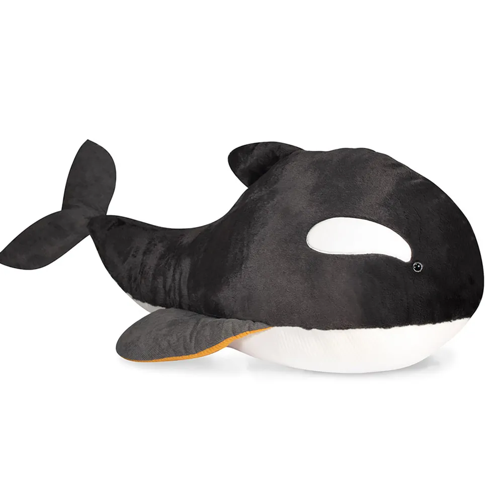 Taillée pour jouer, s’éveiller et s’inventer de folles aventures, cette Peluche Orque XXL est aussi très douce pour des instants plus câlins. Très tendance avec ses belles couleurs et ses subtiles associations de matières , elle prendra aisément place dans la déco de la chambre. Un cadeau de naissance idéal.