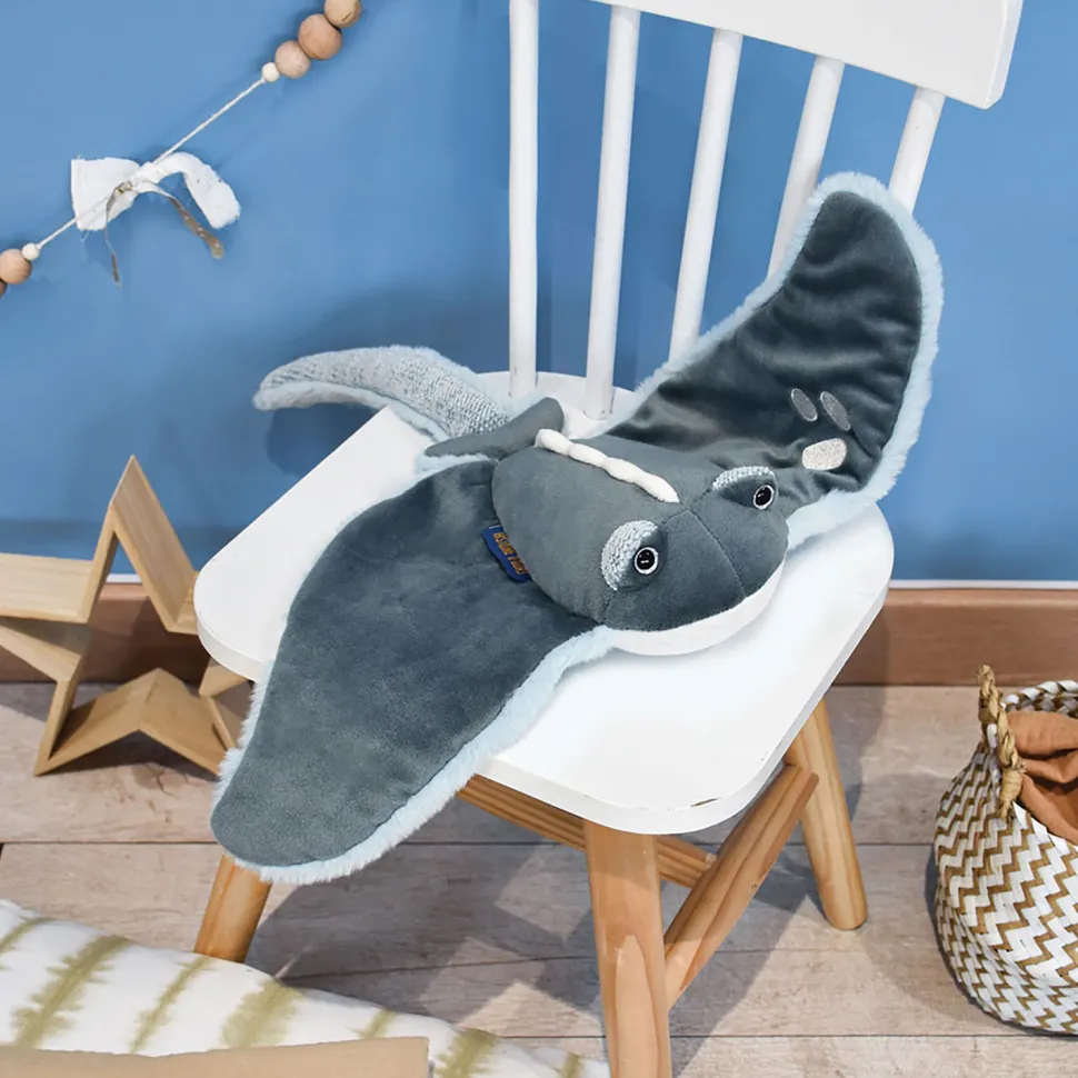 De nature curieuse mais très prudente, la majestueuse Peluche Raie Manta vous fera découvrir l’océan en toute sérénité ! Embarquez à bord de ses grandes ailes pour un voyage extraordinaire au coeur des océans.